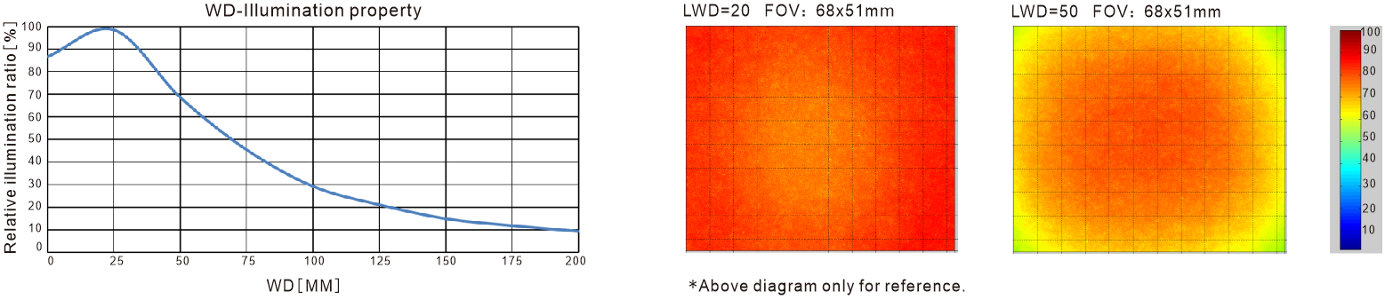 Unique structure can achieve diffused, even and soft illumination which doesn’t change with the change of altitude. The PCB is fixed with 90 degrees LEDs. Low angle effective illumination can enhance the contrast of features and defects (such as laser printing or etching).