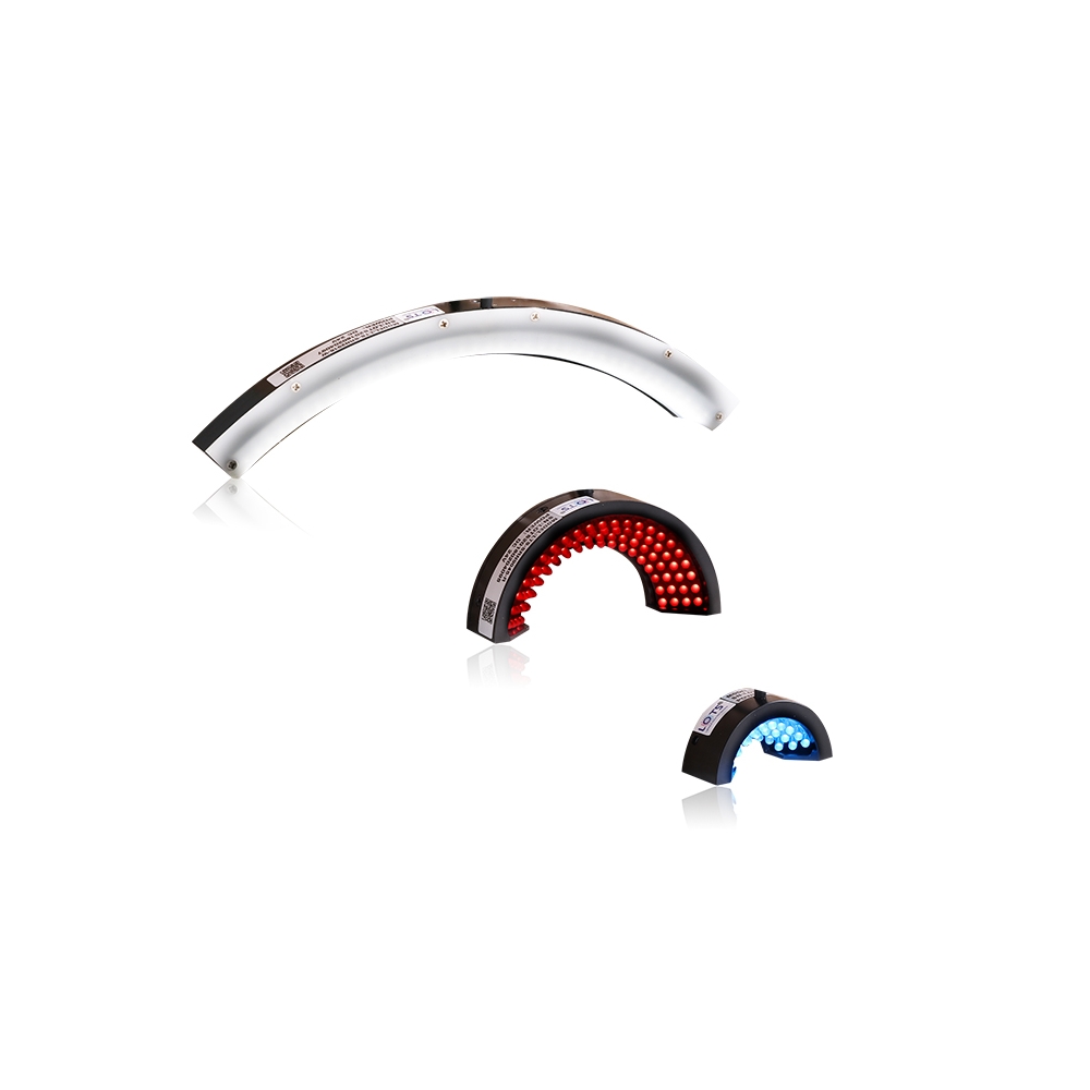 The half ring light adopts lamp LEDs to get high brightness. The shape is small and light, which is easier to install than the ordinary ring light. It can be used to inspect a variety of arc shaped objects and also can be combined with bar lights as runway lighting.