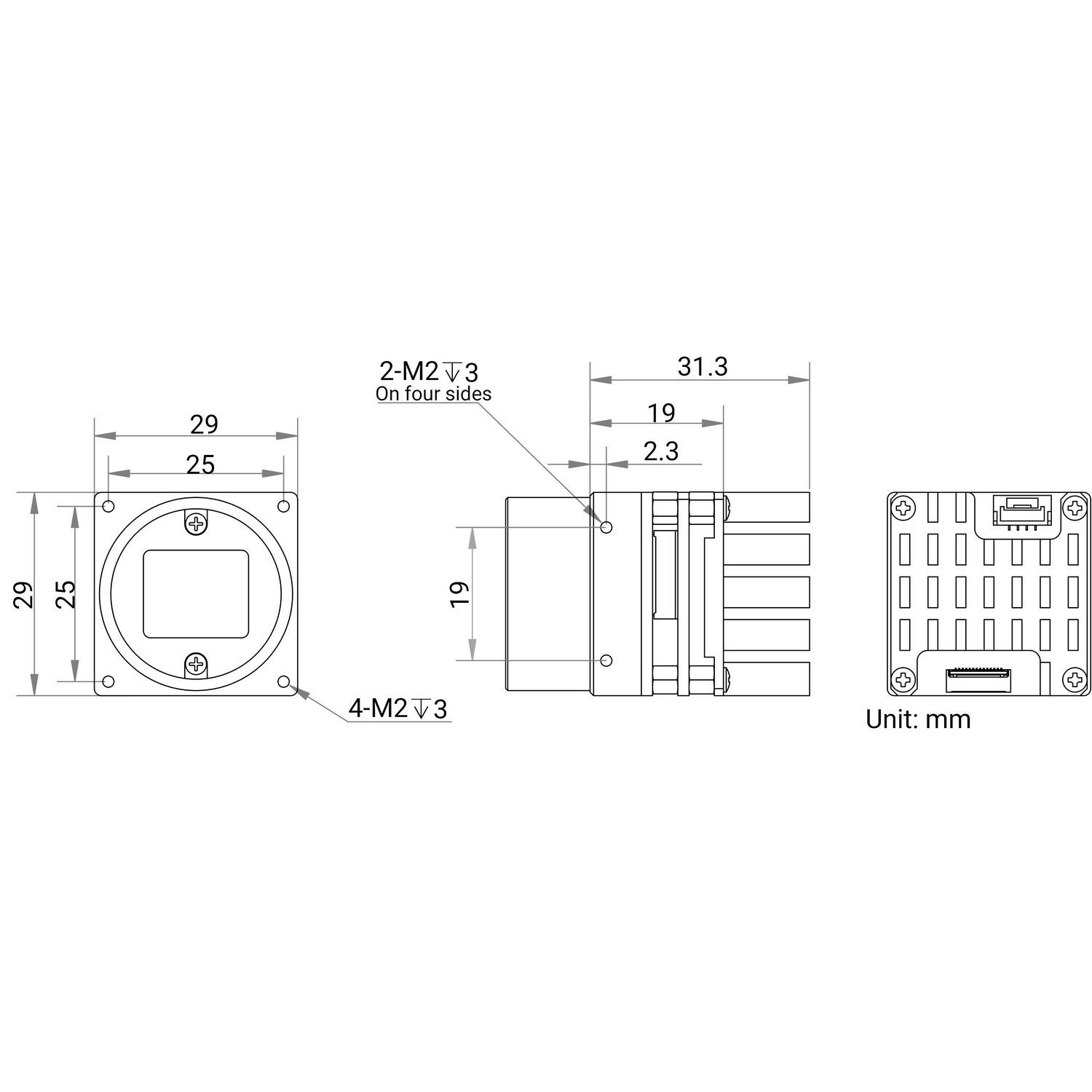 The board-level camera can support a variety of lens interface options, bare board (B), C interface (C) and M12 interface (S) to fulfill various requirements.