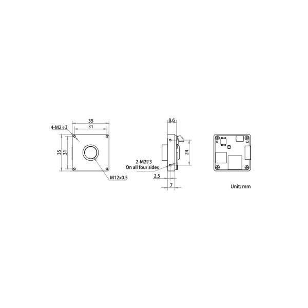 | Dimension | M12-mount camera: 35 mm × 35 mm × 8.6 mm (1.4″ × 1.4″ × 0.3″) | |