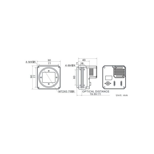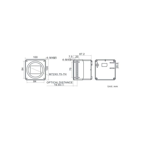 | Mechanical | Lens mount | M72*0.75, flange back focal length 19.55 mm (0.8″) |