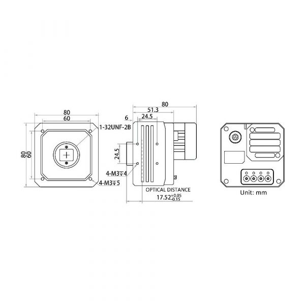 | Mechanical | Lens mount | M58-mount, optical back focal length 11.48 mm (0.5″) |