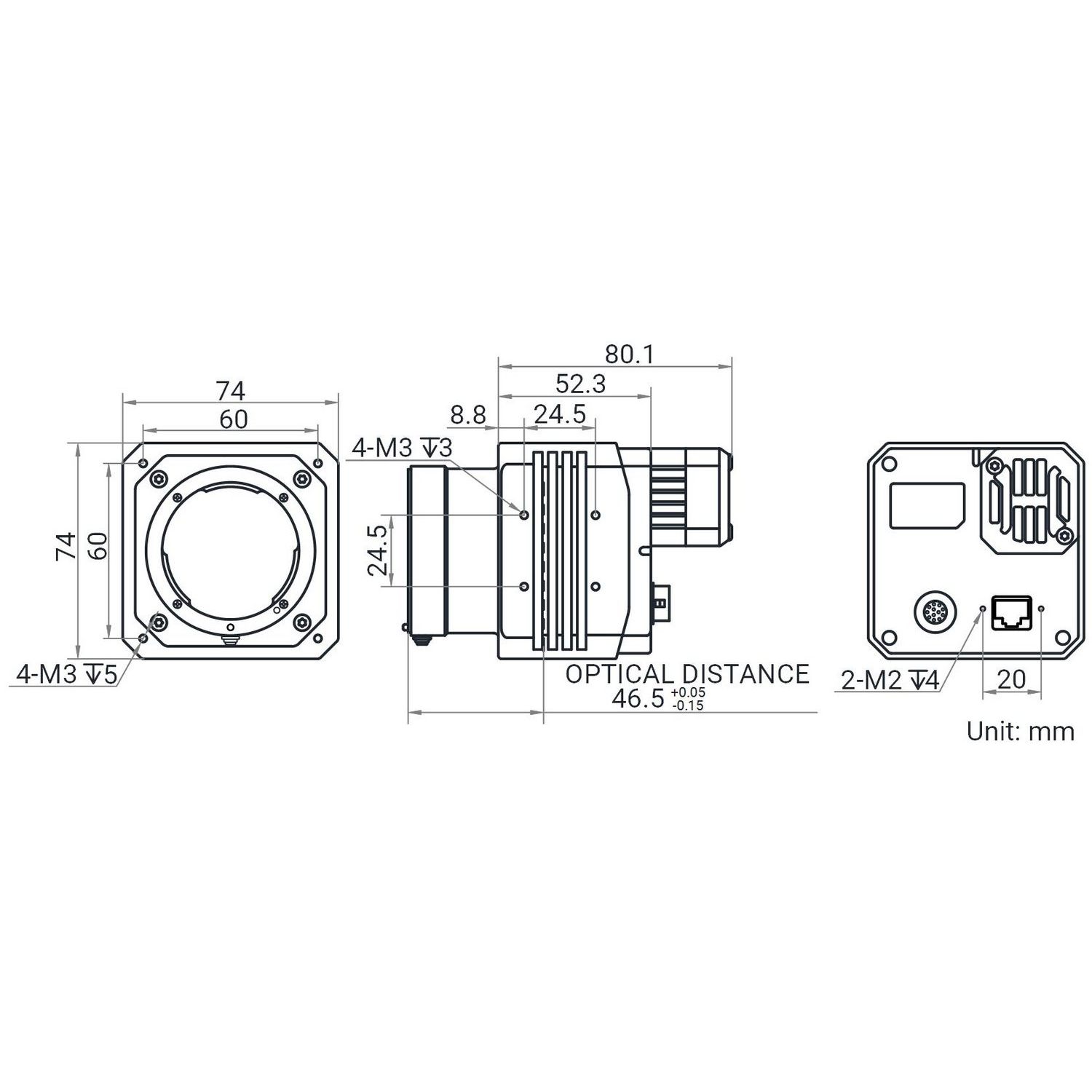 3.45 μm, 3.9 fps @ 6464 × 4852 Bayer RG 8, Color, 46.5mm (1.8"), Gigabit