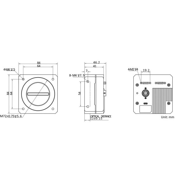 | Mechanical | Lens mount | M72*0.75, optical back focal length: 12 mm (0.5″), applicable to F-mount via lens adapter |
