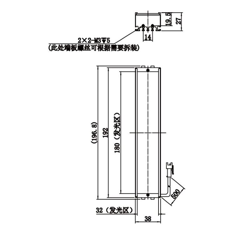 | Light-emitting area diameter | 180 mm × 32 mm | |