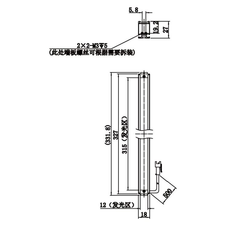 | Light-emitting area diameter | 315 mm × 12 mm | |
