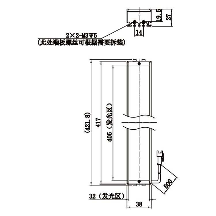| Light-emitting area diameter | 405 mm × 32 mm | |