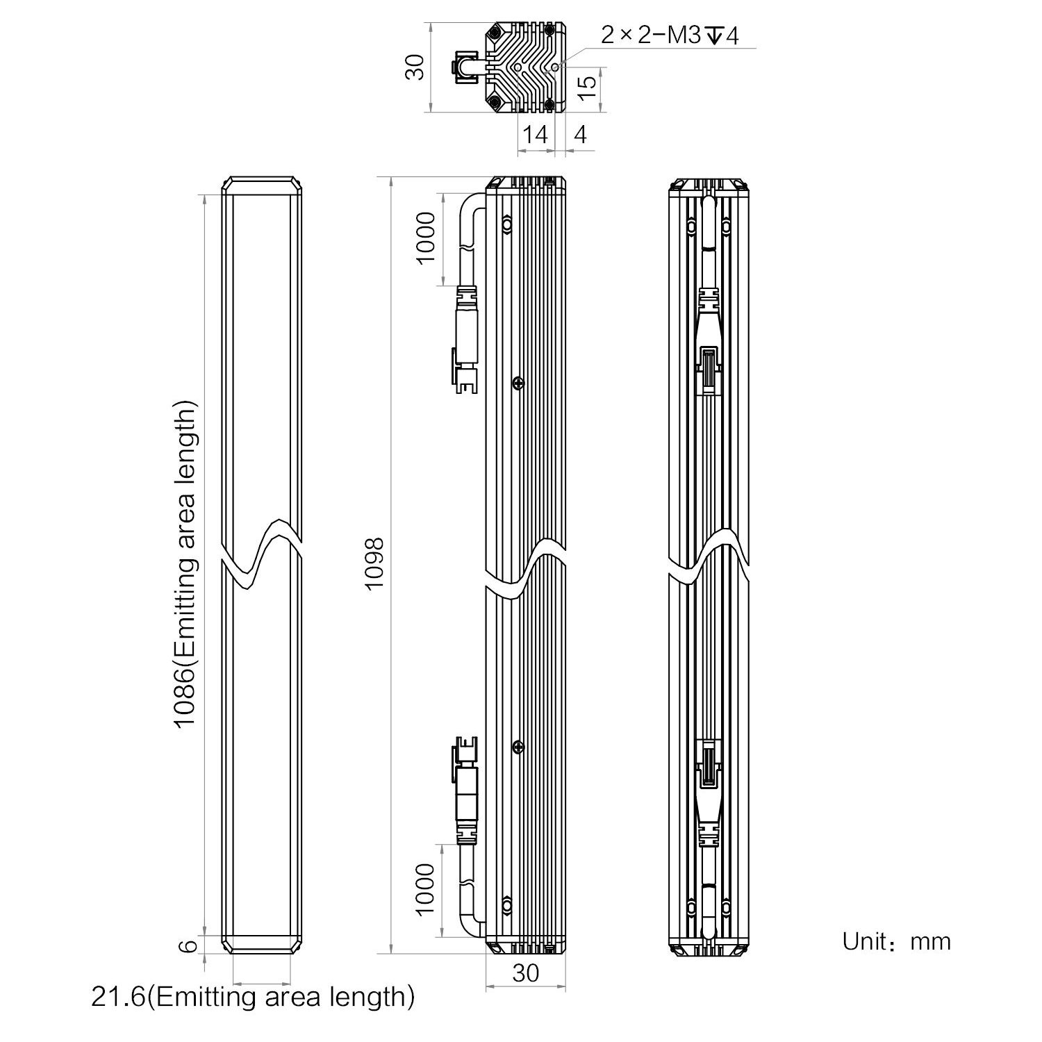 | Emitting area dimension | 1086 mm × 21.6 mm | |