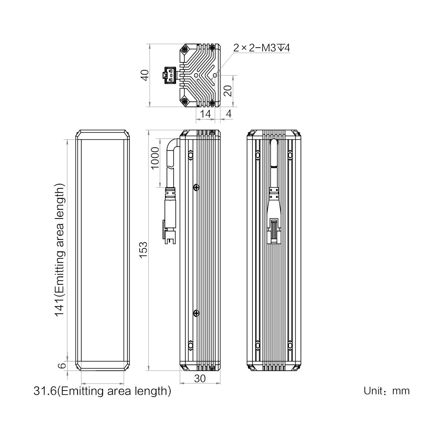 | Emitting area dimension | 141 mm × 31.6 mm | |