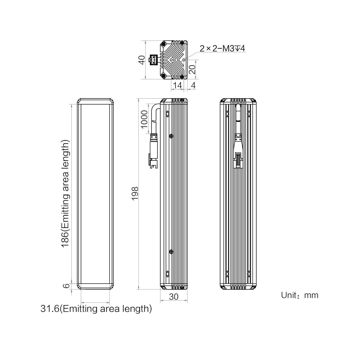 | Emitting area dimension | 186 mm × 31.6 mm | |