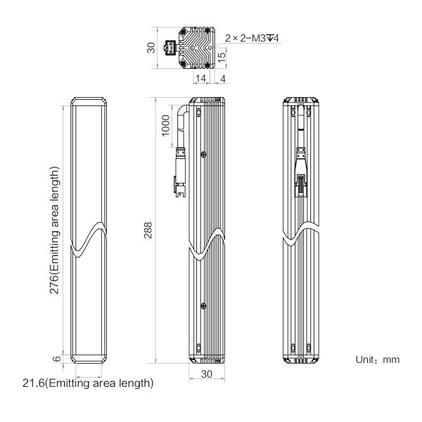 | Emitting area dimension | 276 mm × 21.6 mm | |