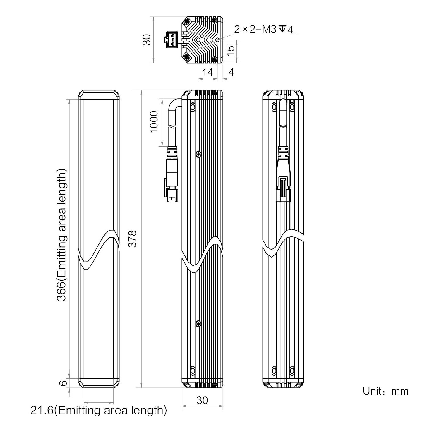 | Emitting area dimension | 366 mm × 21.6 mm | |