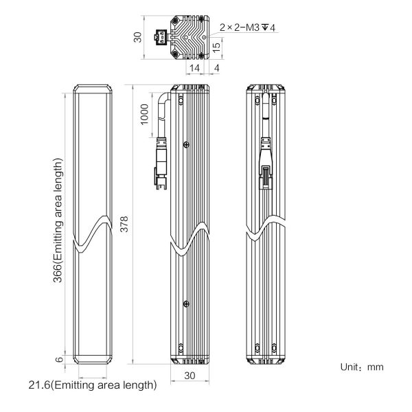 | Emitting area dimension | 366 mm × 21.6 mm | |