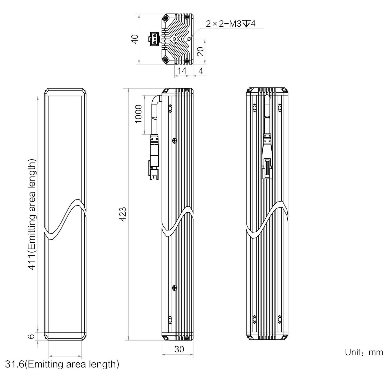 | Emitting area dimension | 411 mm × 31.6 mm | |