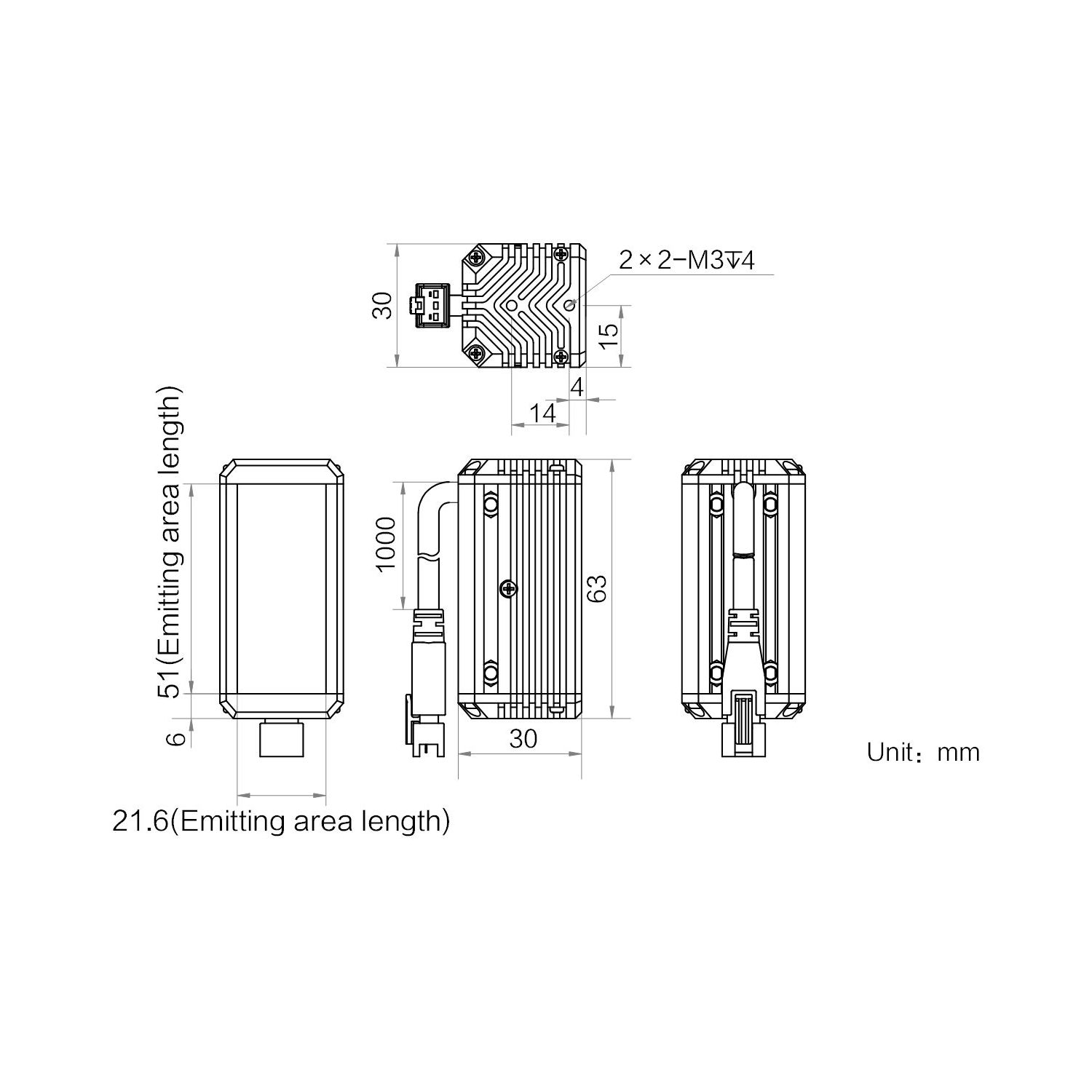 | Emitting area dimension | 51 mm × 21.6 mm | |