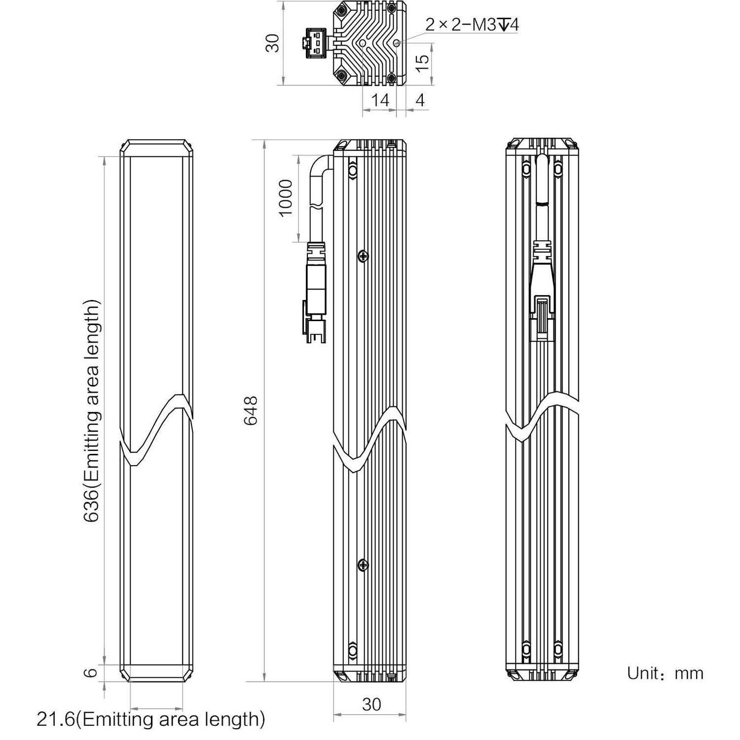 | Emitting area dimension | 636 mm × 21.6 mm | |