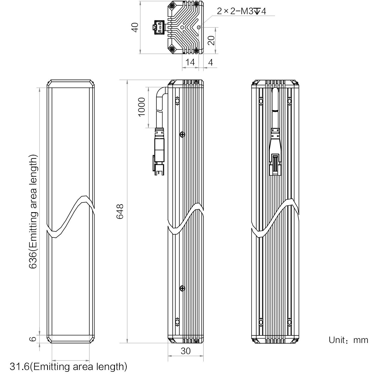 | Emitting area dimension | 636 mm × 31.6 mm | |