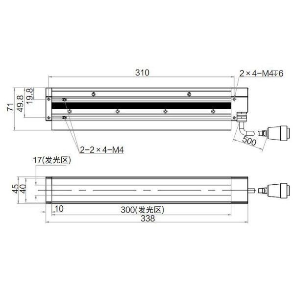 | Light-emitting area | 300 mm × 17 mm | |