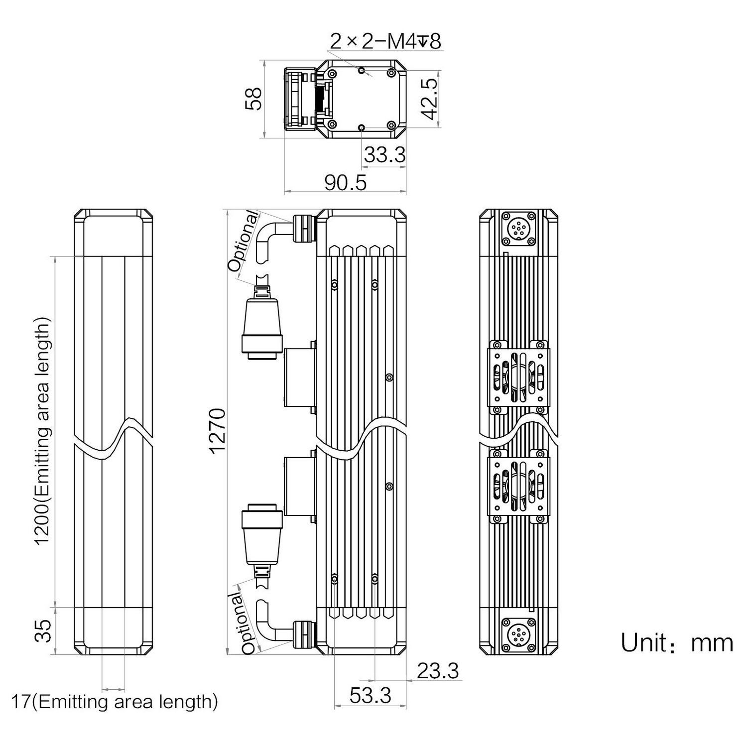 | Emitting area dimensions | 1200 mm × 17 mm | |