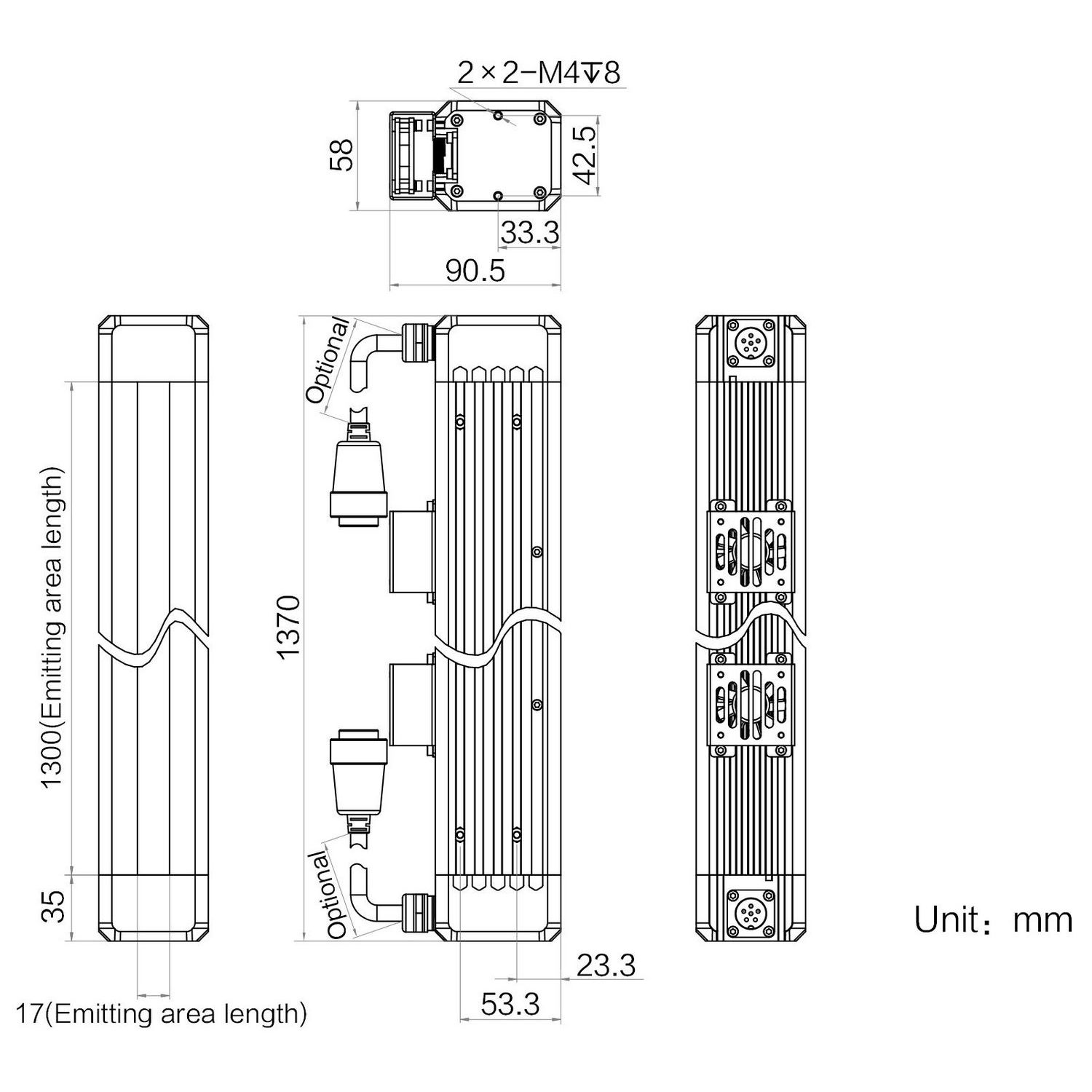 | Emitting area dimensions | 1300 mm × 17 mm | |