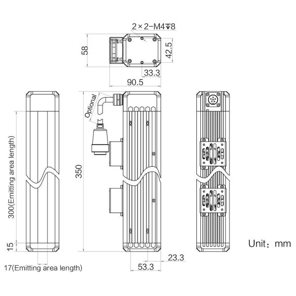 | Emitting area dimensions | 300 mm × 17 mm | |