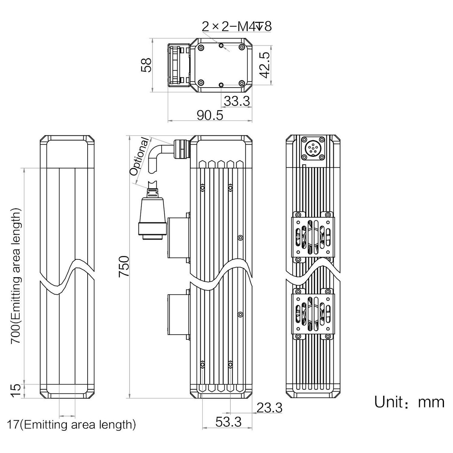 | Emitting area dimensions | 700 mm × 17 mm | |