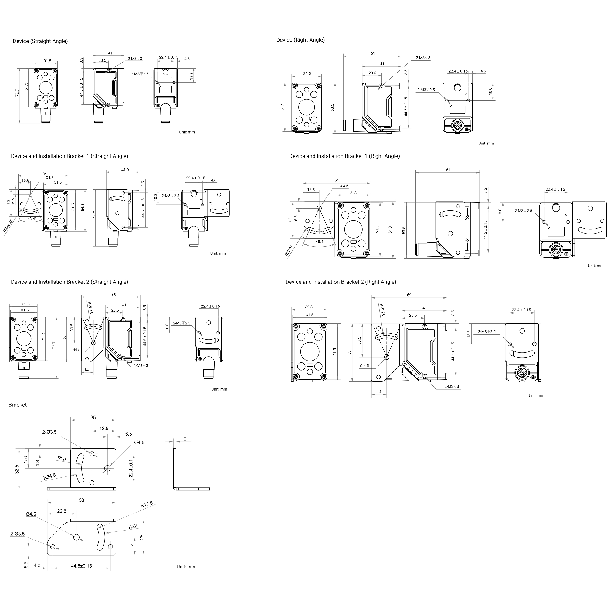 Right angle: 51.5 mm × 31.5 mm × 61 mm (2.0″ × 1.2″ × 2.4″)