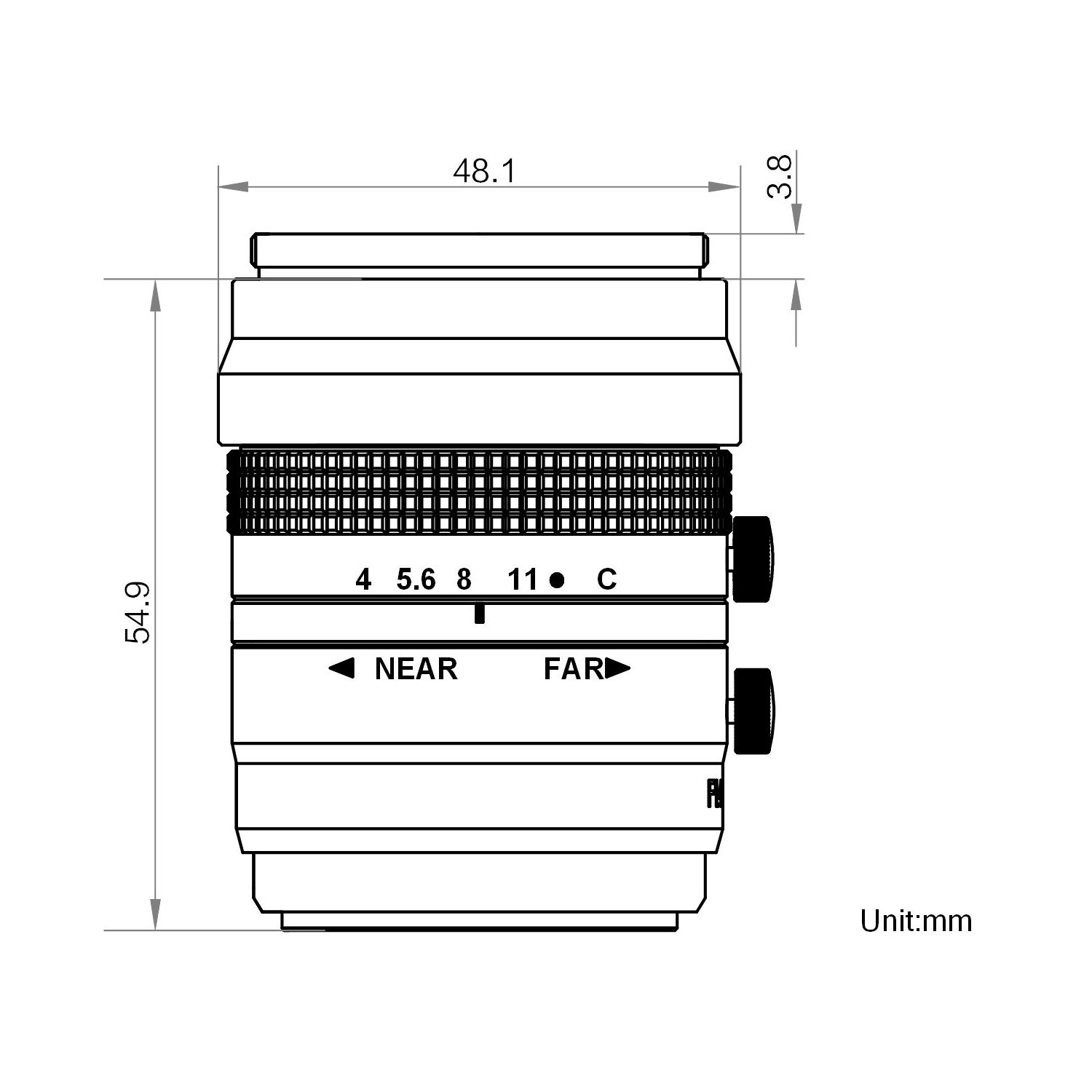 Dimension Φ48.1 × 54.9 mm