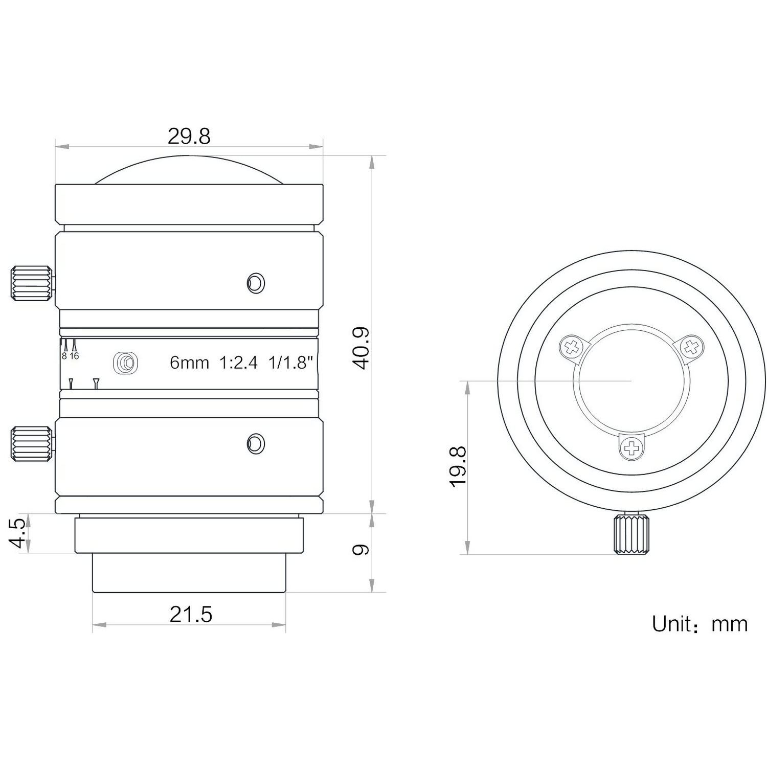 | Type | 6mm, F2.4, 1/1.8″, 10MP Lens,C-Mount | |