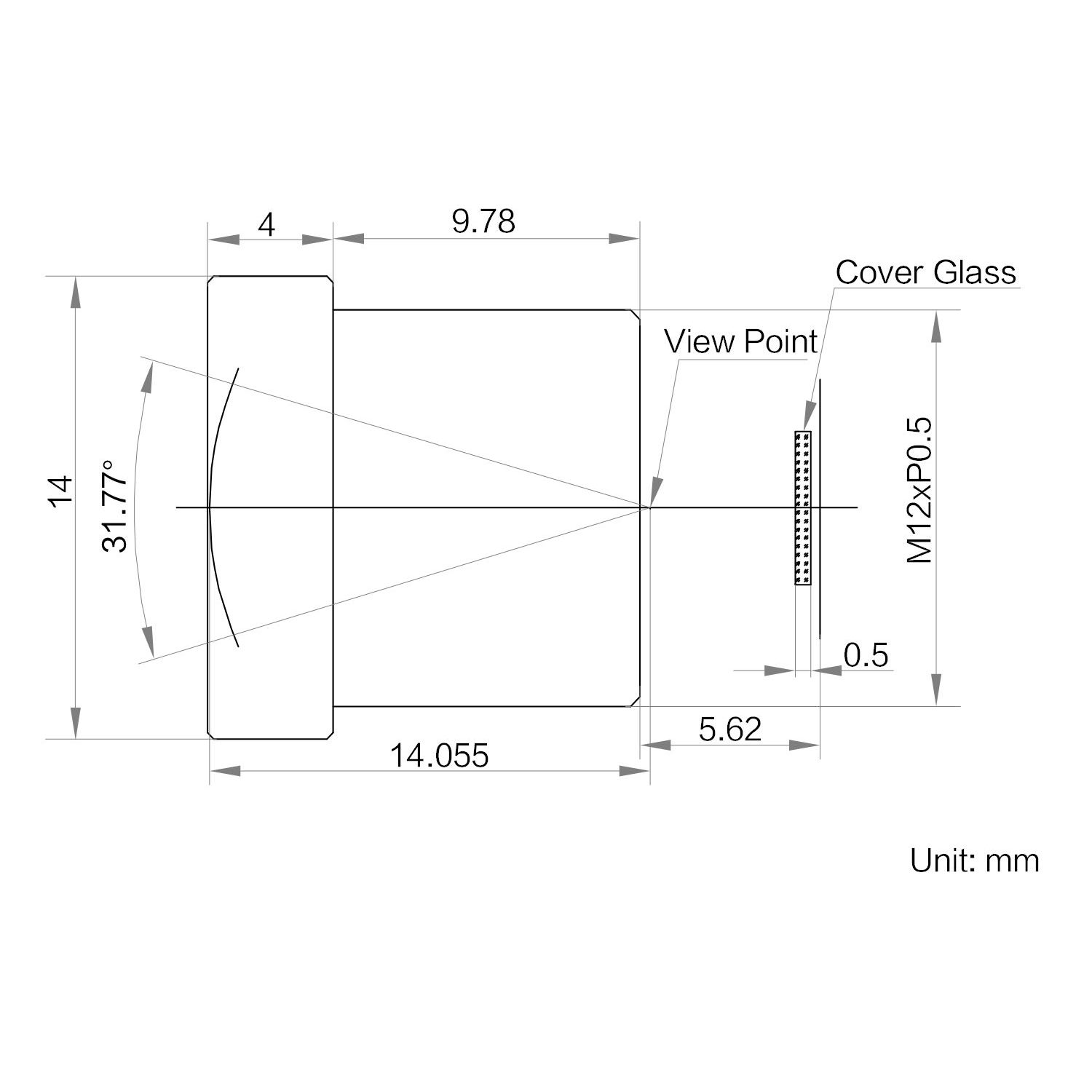 | Field of View | D(8.86 mm):31°H(7.37 mm):26°V(4.91 mm):17° | |