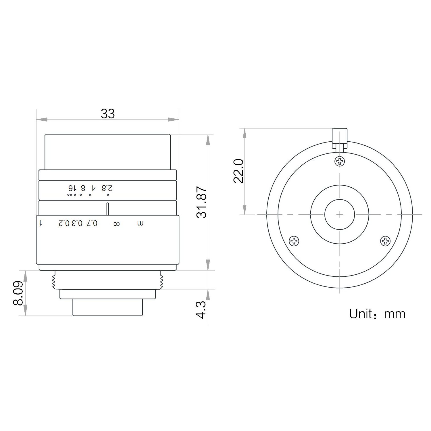 | Type | 16mm, F2.8, 1/1.8″, 6MP Lens, C-Mount | |
