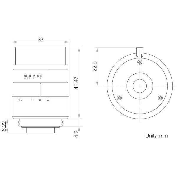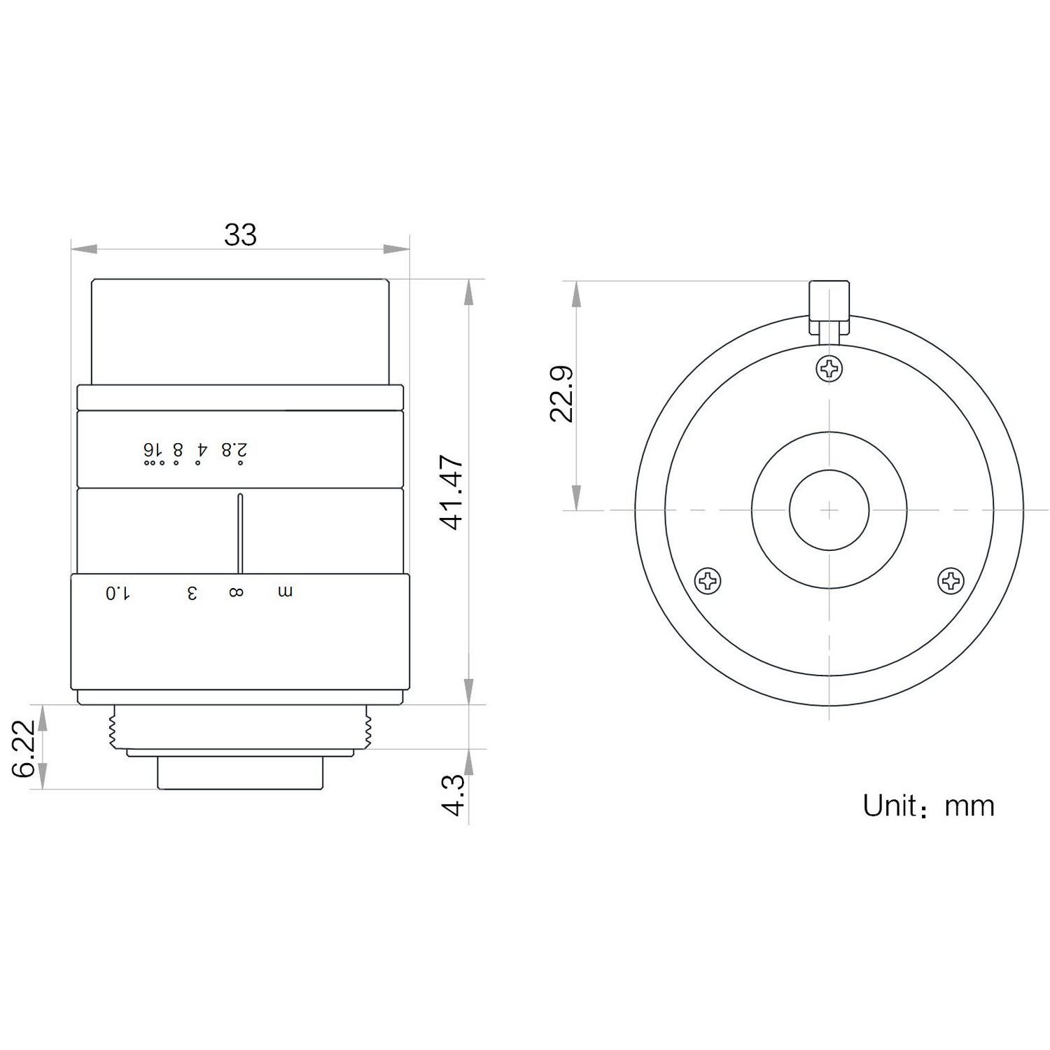 | Type | 40mm, F2.8, 1/1.8″, 6MP Lens, C-Mount | |
