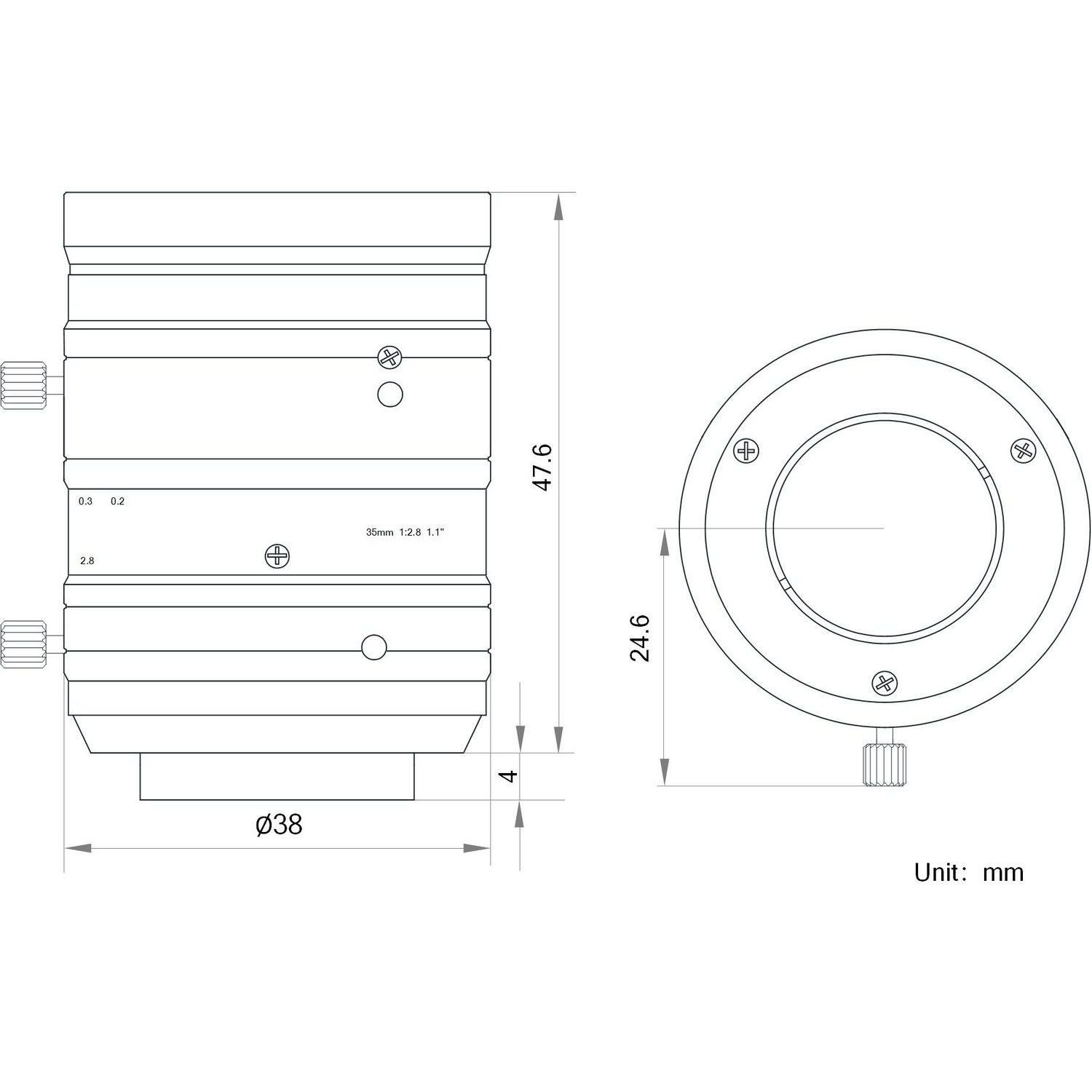 35mm, F2.8 ~ F22, Ø 17.6mm (1.1''), C-Mount