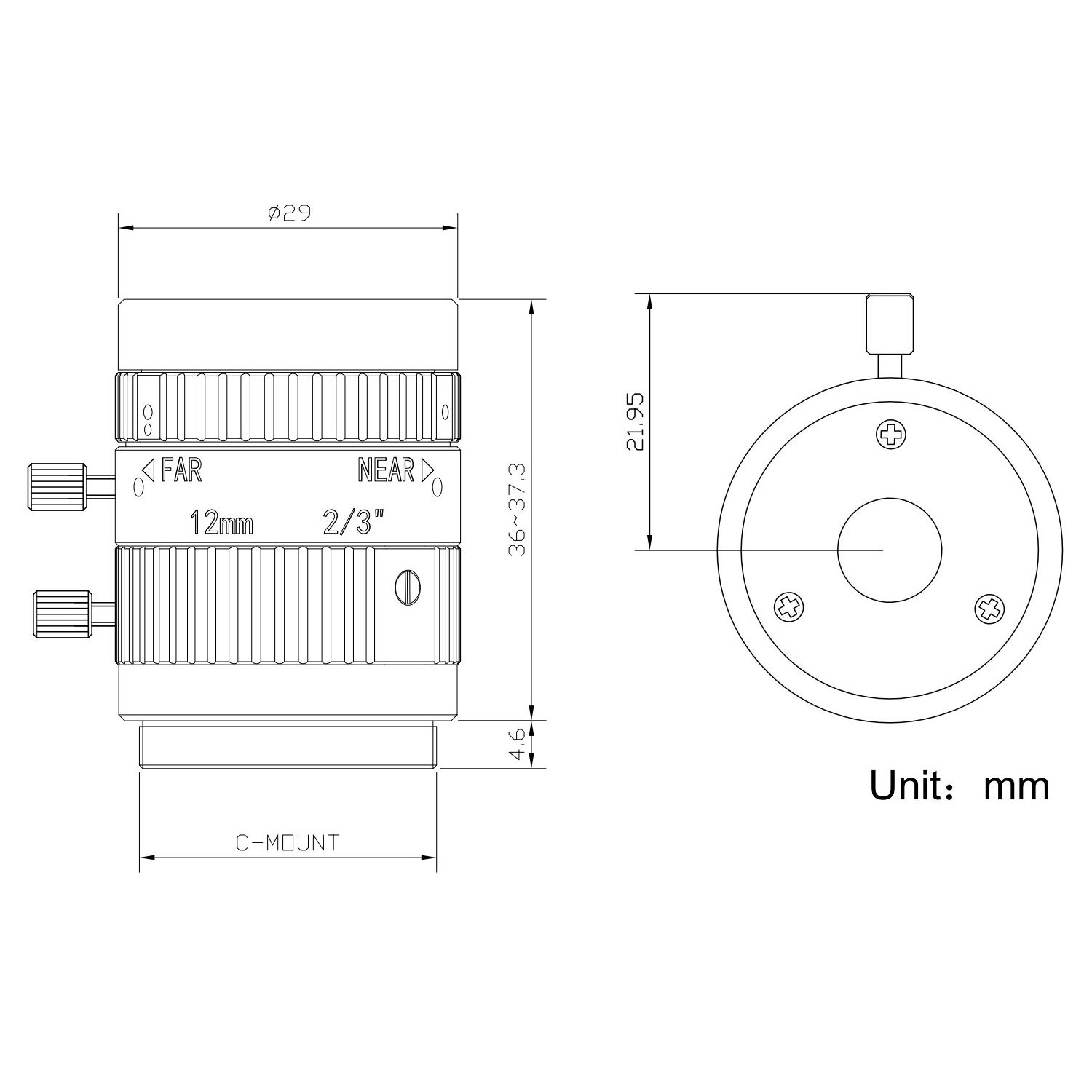 | Type | 12mm, F2.4, 2/3″, 5MP Lens, C-Mount | |