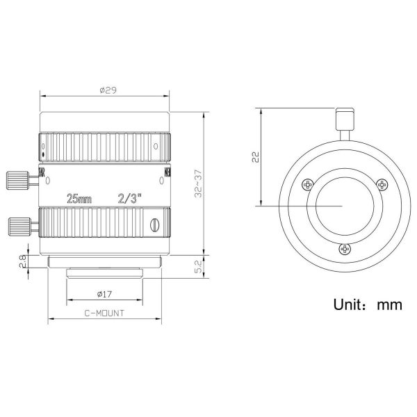 | Type | 25mm, F1.8, 2/3″, 5MP Lens, C-Mount | |